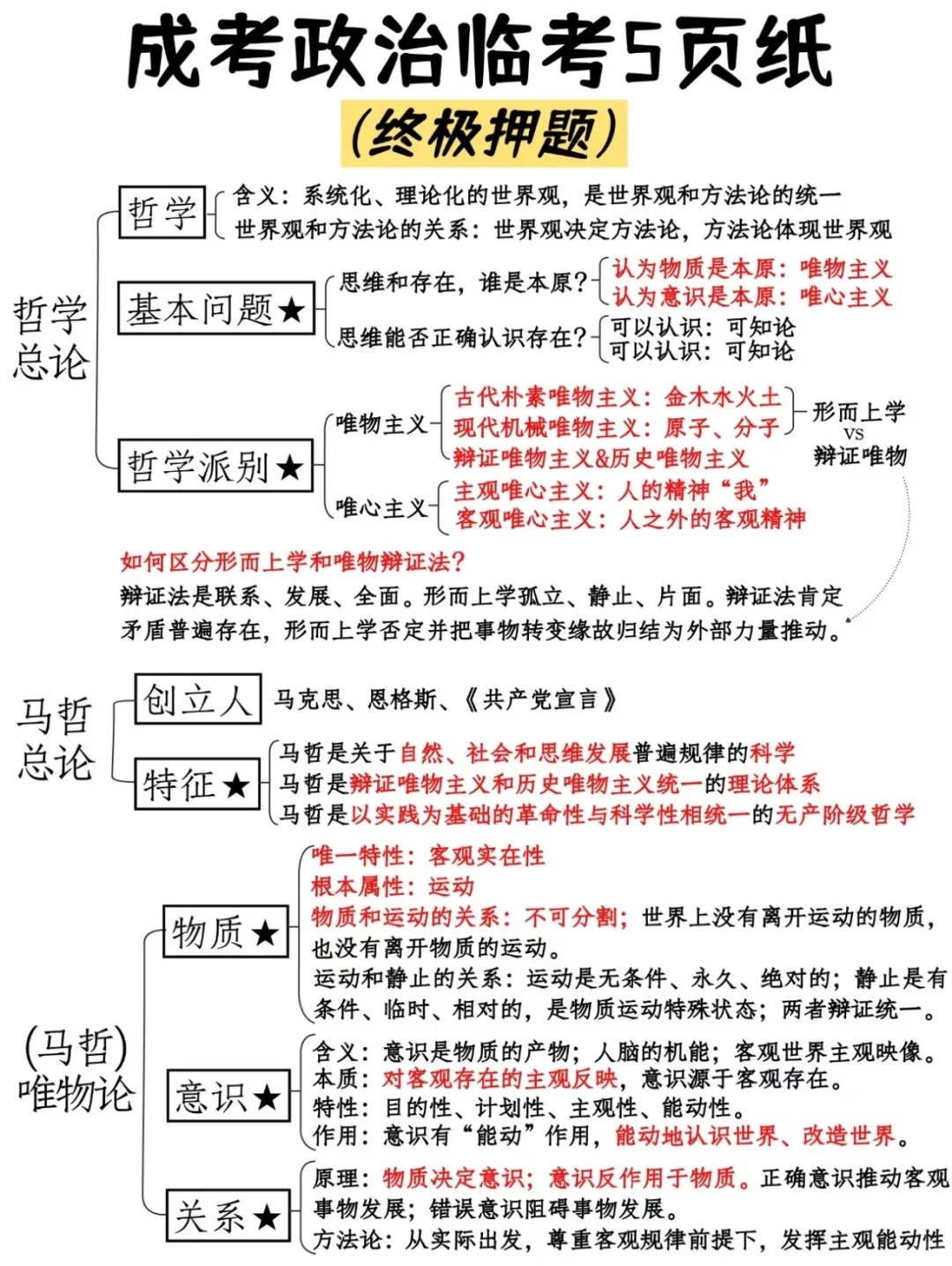 成考政治临考5页纸🔥最后10天逆袭95+