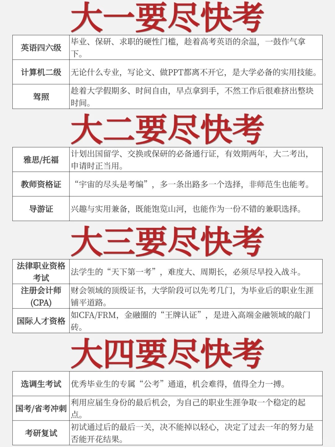 🤯 别慌!学姐把大学四年考证路线图全整理出来了 跟着走就对了 卷得明明白白