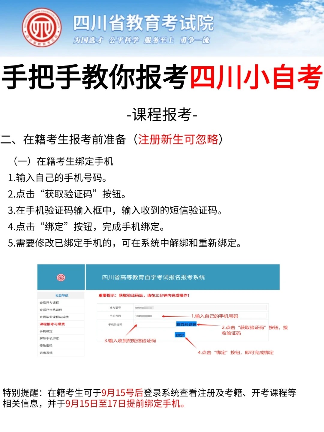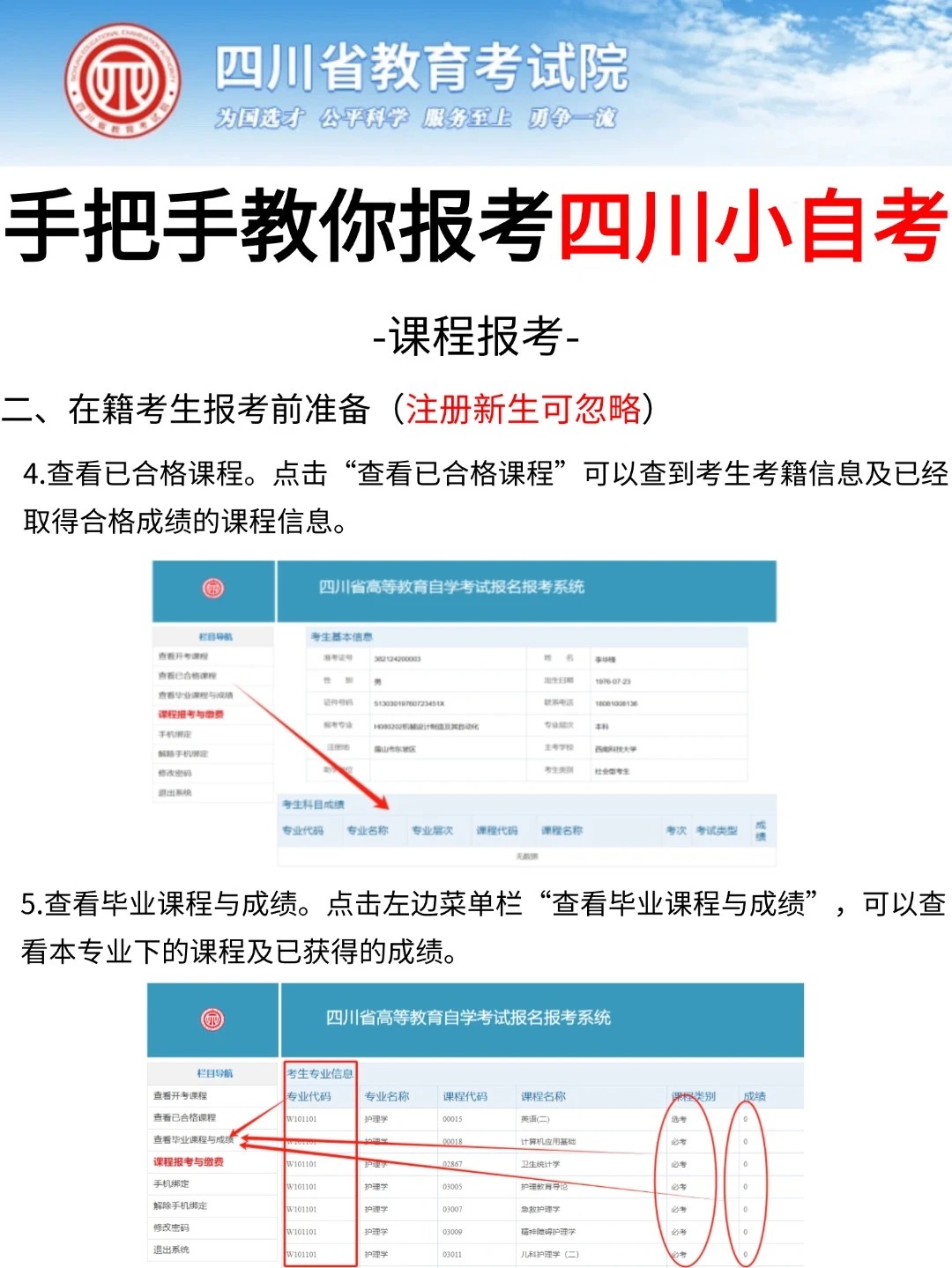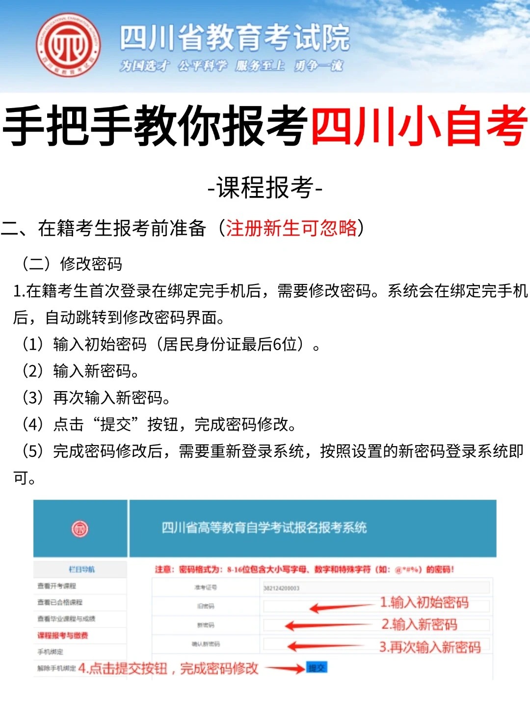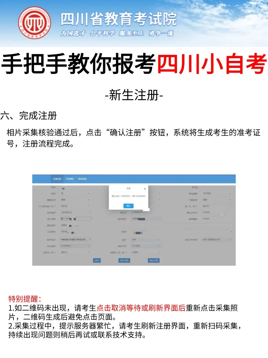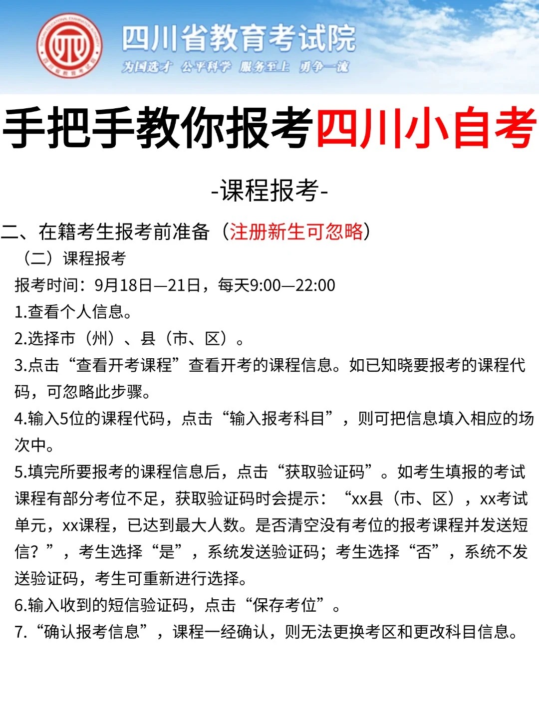 四川省考试院发布了自考考试网上新生注册以及课程报考系统