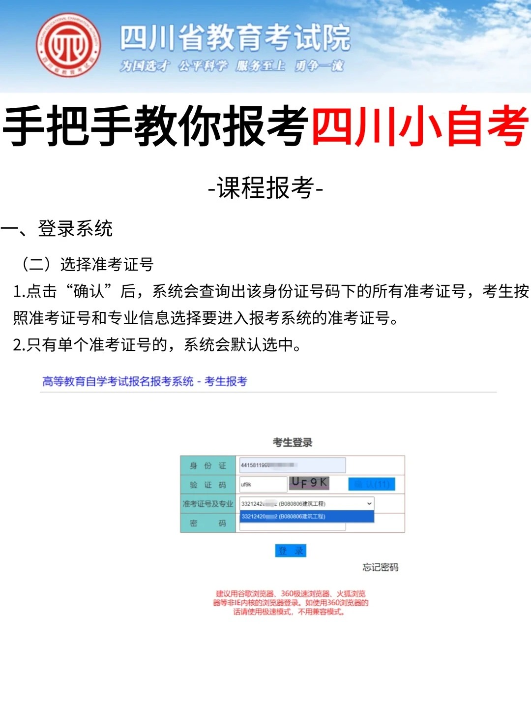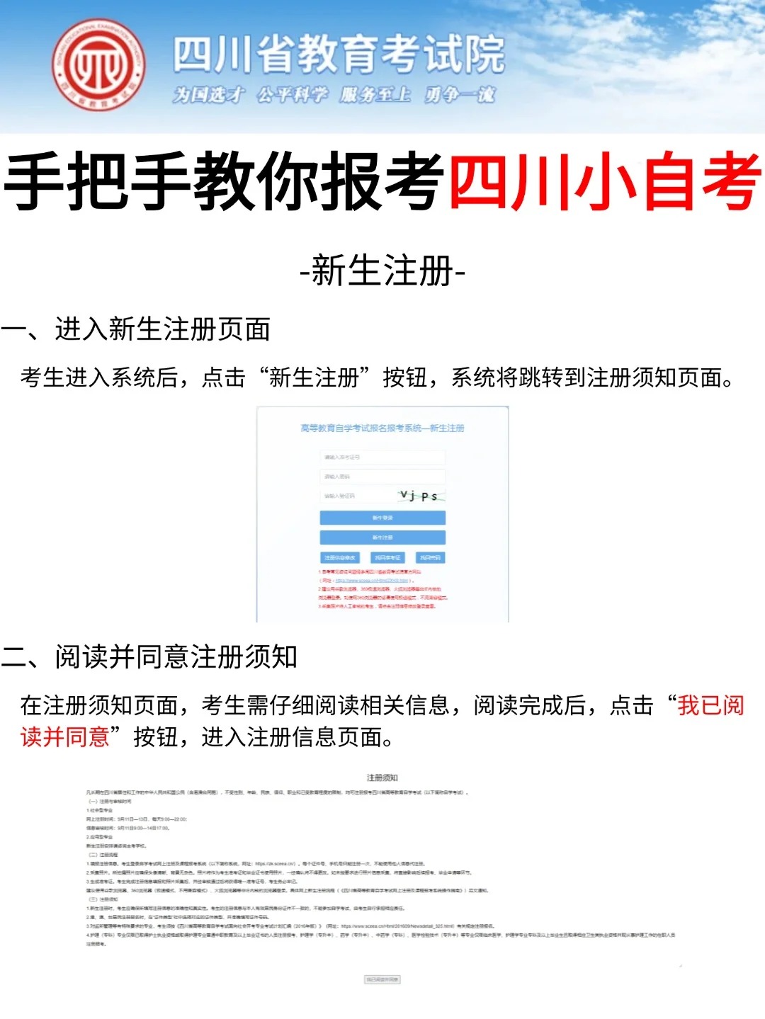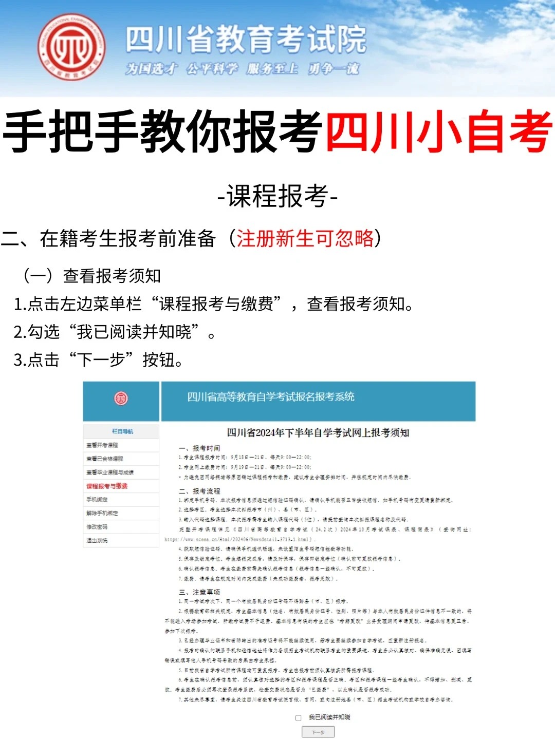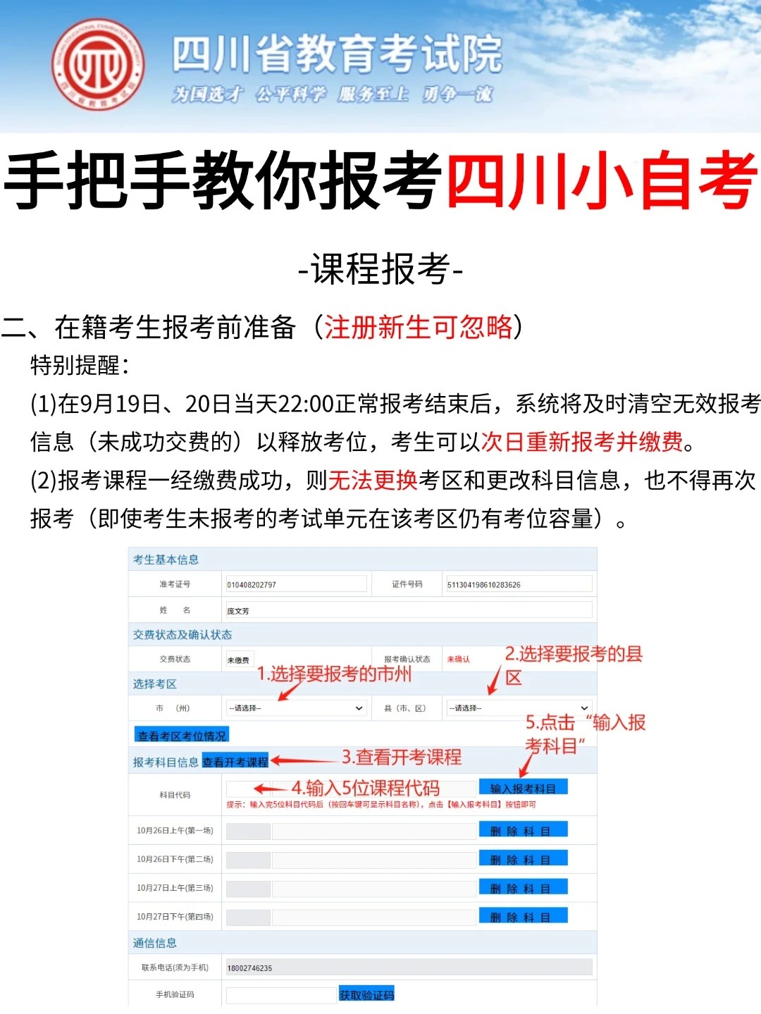 四川省考试院发布了自考考试网上新生注册以及课程报考系统