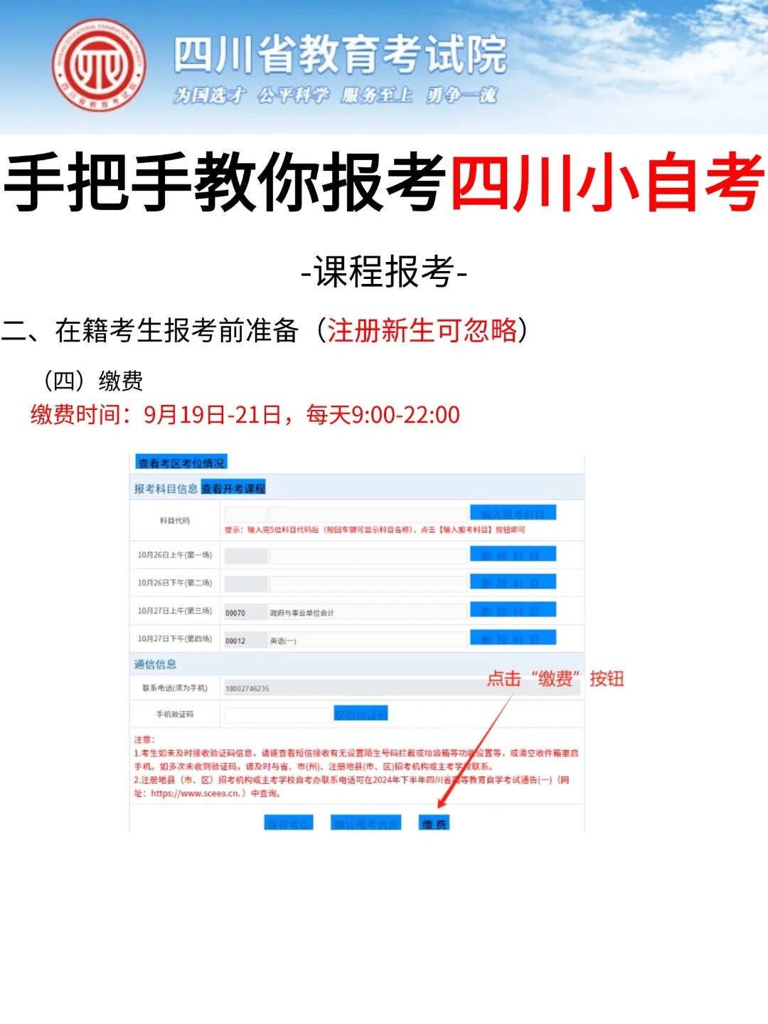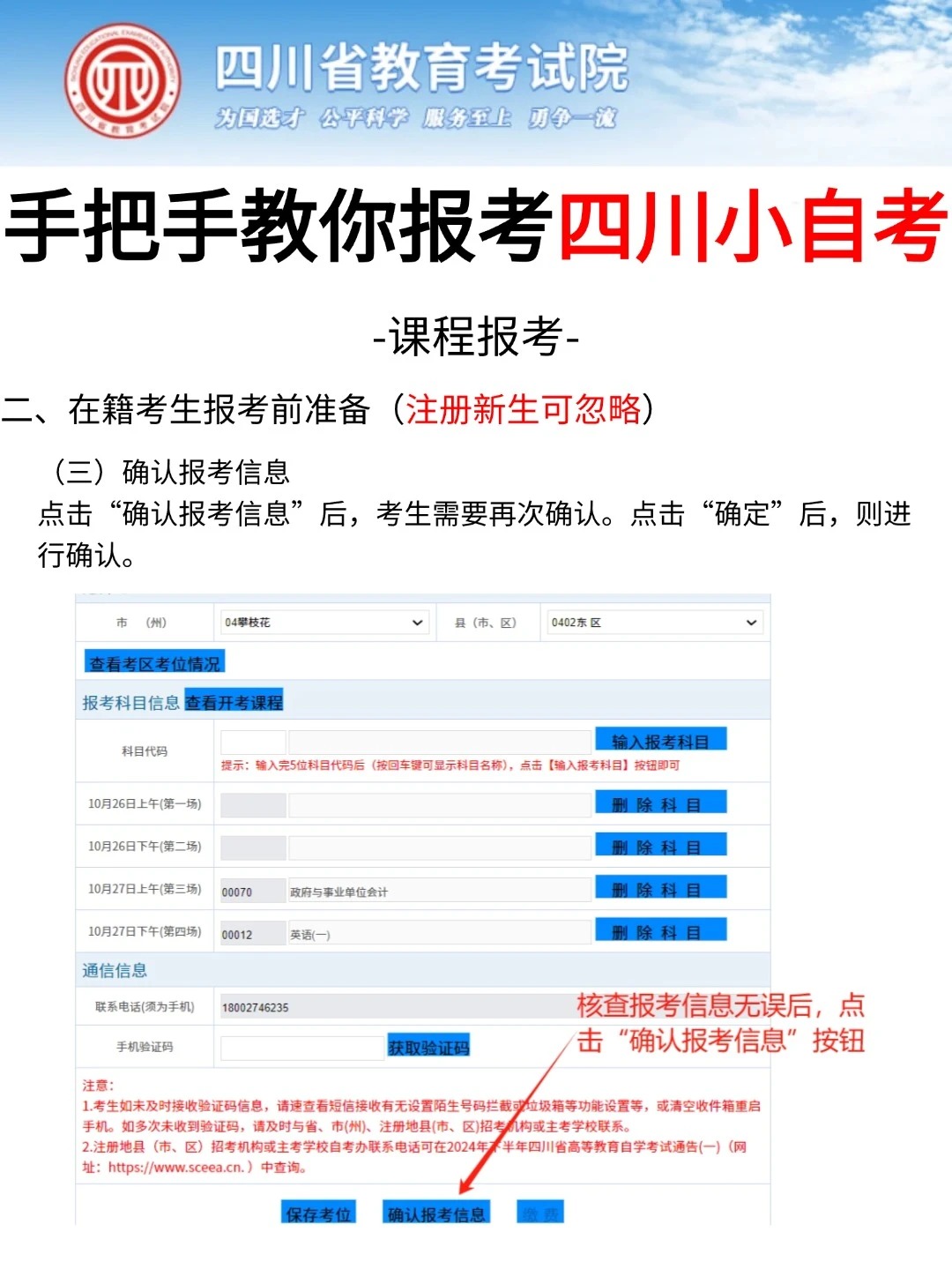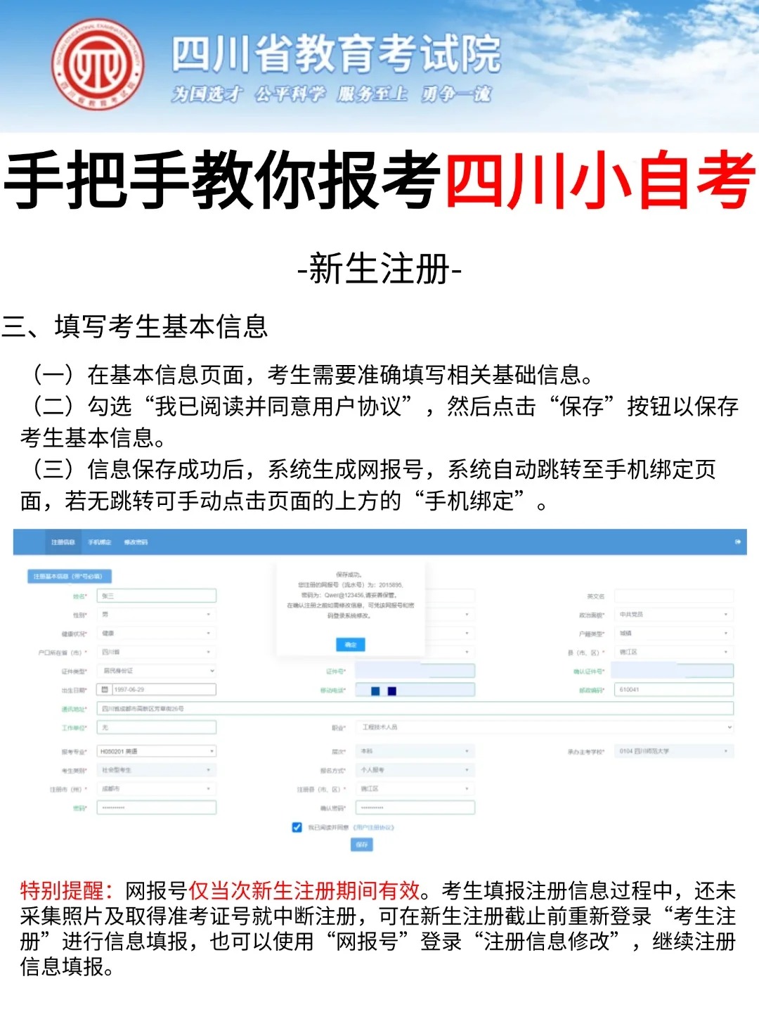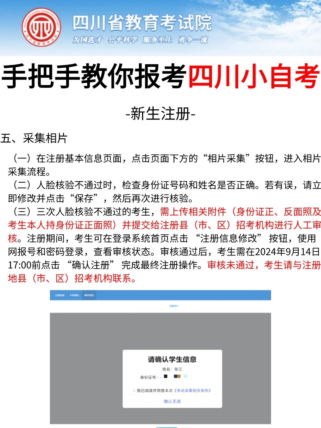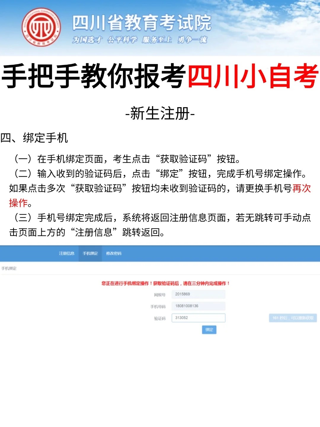 四川省考试院发布了自考考试网上新生注册以及课程报考系统